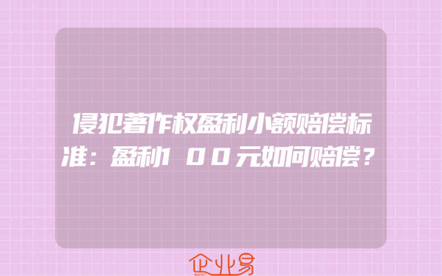 - 侵犯著作权盈利小额赔偿标准:盈利100元如何赔偿?