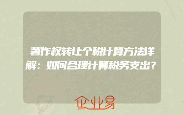 - 著作权转让个税计算方法详解:如何合理计算税务支出?