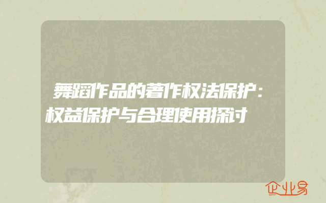 - 舞蹈作品的著作权法保护:权益保护与合理使用探讨