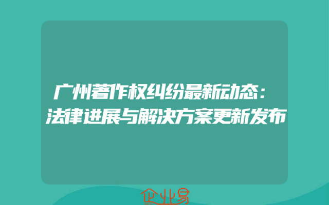 - 广州著作权纠纷最新动态:法律进展与解决方案更新发布