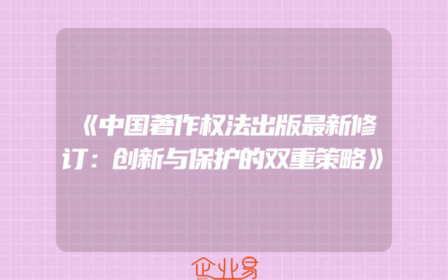 - 《中国著作权法出版最新修订:创新与保护的双重策略》