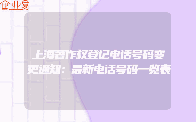 - 上海著作权登记电话号码变更通知:最新电话号码一览表