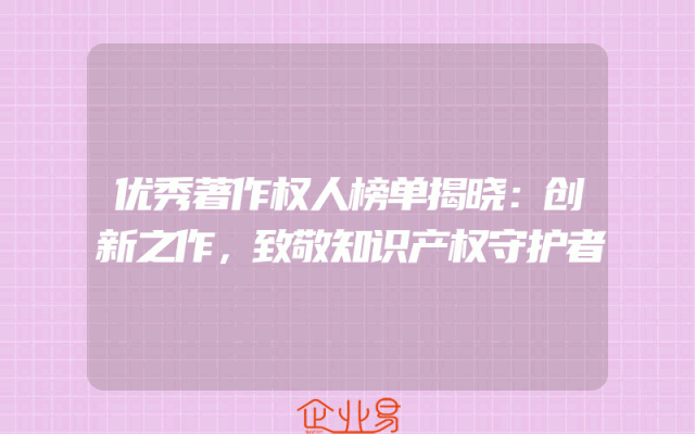 - 优秀著作权人榜单揭晓:创新之作,致敬知识产权守护者