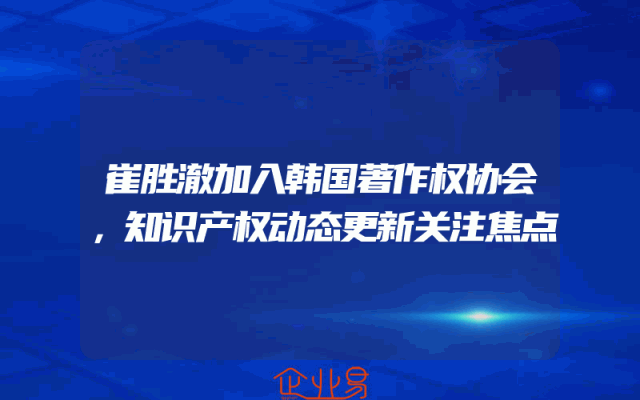 - 崔胜澈加入韩国著作权协会,知识产权动态更新关注焦点