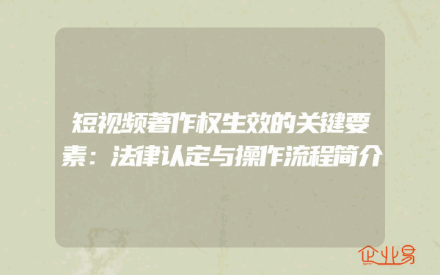 - 短视频著作权生效的关键要素:法律认定与操作流程简介