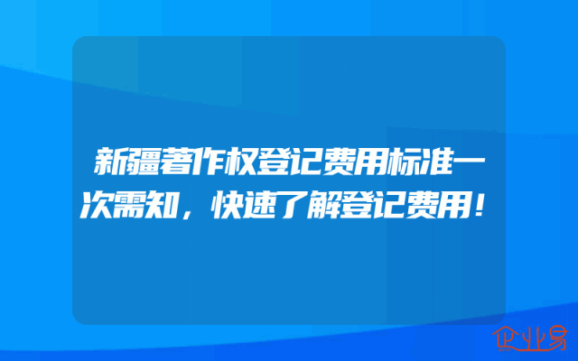 - 新疆著作权登记费用标准一次需知,快速了解登记费用!