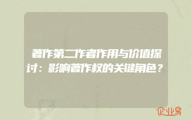 - 著作第二作者作用与价值探讨:影响著作权的关键角色?