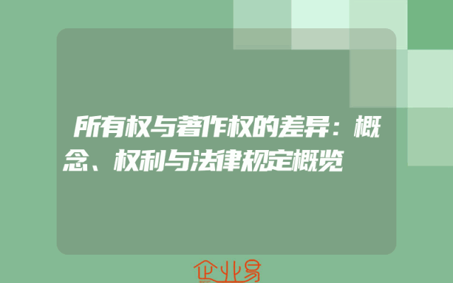 - 所有权与著作权的差异解析:概念、权利与法律规定概览一、概念解析所有权和著作权是两种不同的权利类型,它们在知识产权领域中各自扮演着重要的角色。所有权,通常指的是对某一物品或资产的实际拥有和控制权,是