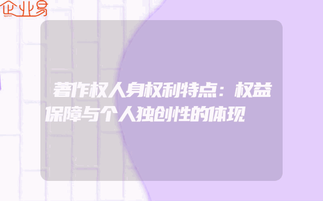 - 著作权人身权利特点:权益保障与个人独创性的体现