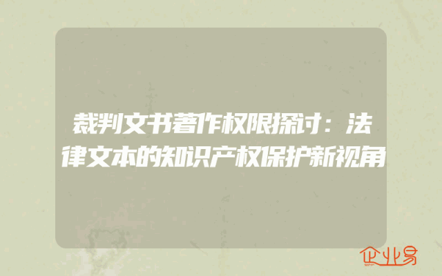 - 裁判文书著作权限探讨:法律文本的知识产权保护新视角