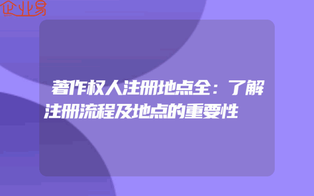 - 著作权人注册地点全:了解注册流程及地点的重要性