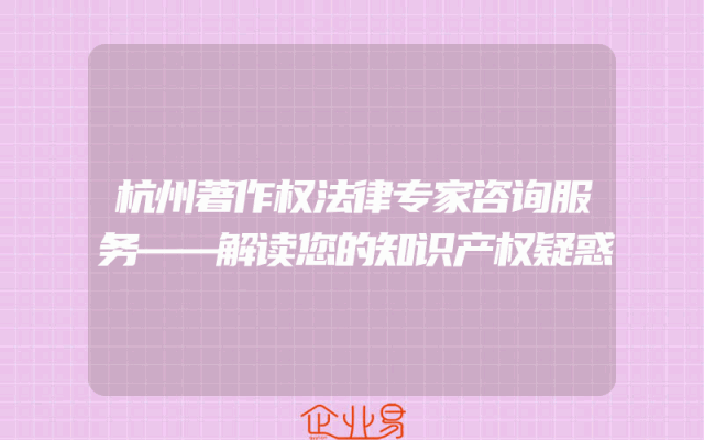 - 杭州著作权法律专家咨询服务——解读您的知识产权疑惑