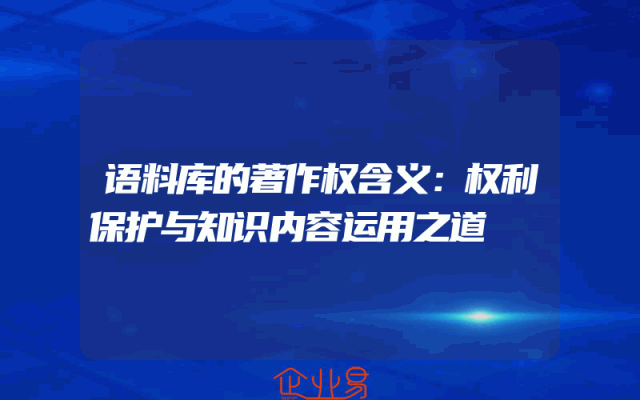 - 语料库的著作权含义:权利保护与知识内容运用之道