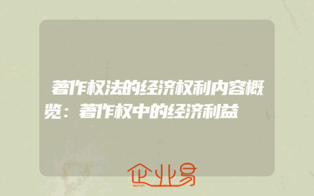 - 著作权法的经济权利内容概览:著作权中的经济利益