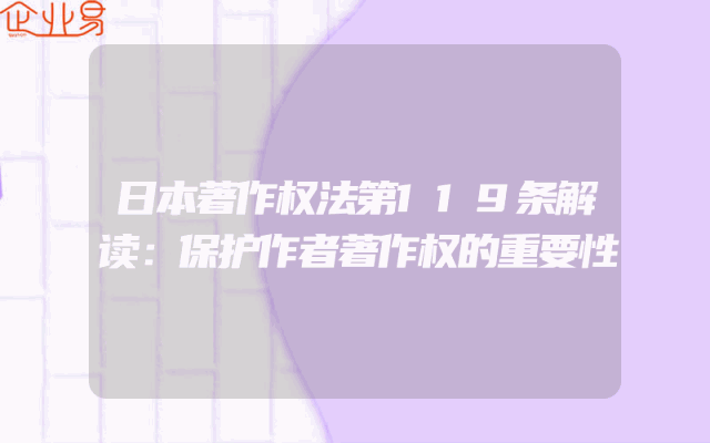 - 日本著作权法第119条解读:保护作者著作权的重要性