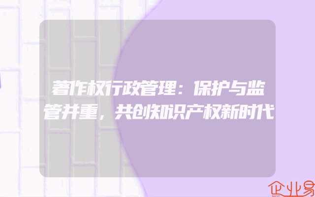- 著作权行政管理:保护与监管并重,共创知识产权新时代
