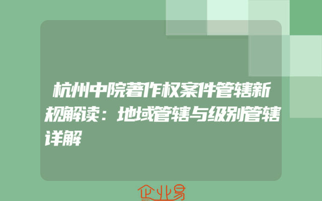 - 杭州中院著作权案件管辖新规解读:地域管辖与级别管辖详解