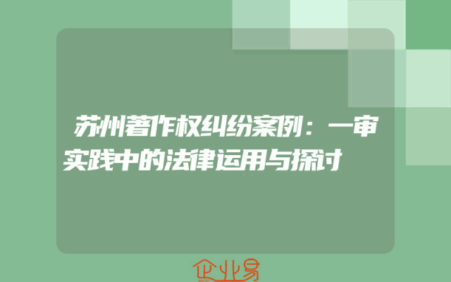 - 苏州著作权纠纷案例:一审实践中的法律运用与探讨