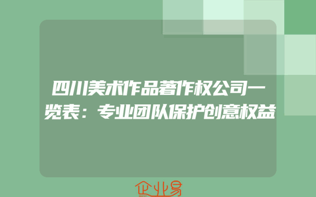 - 四川美术作品著作权公司一览表:专业团队保护创意权益