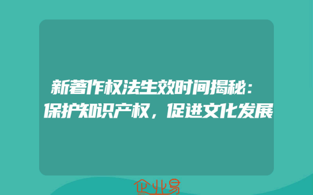 - 新著作权法生效时间揭秘:保护知识产权,促进文化发展