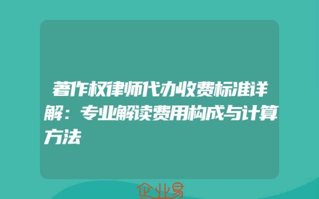 - 著作权律师代办收费标准详解:专业解读费用构成与计算方法