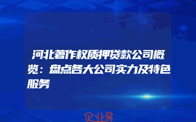 - 河北著作权质押贷款公司概览:盘点各大公司实力及特色服务