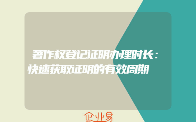 - 著作权登记证明办理时长:快速获取证明的有效周期