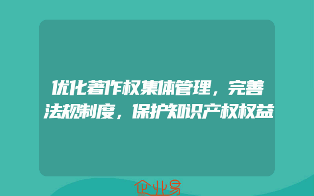 - 优化著作权集体管理,完善法规制度,保护知识产权权益