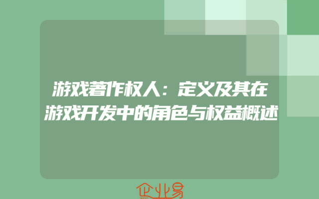 - 游戏著作权人:定义及其在游戏开发中的角色与权益概述