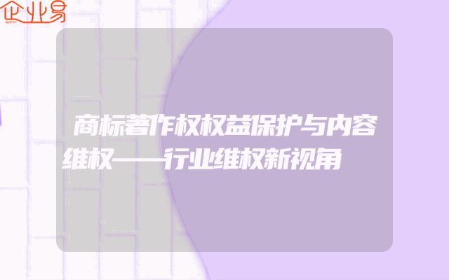 - 商标著作权权益保护与内容维权——行业维权新视角