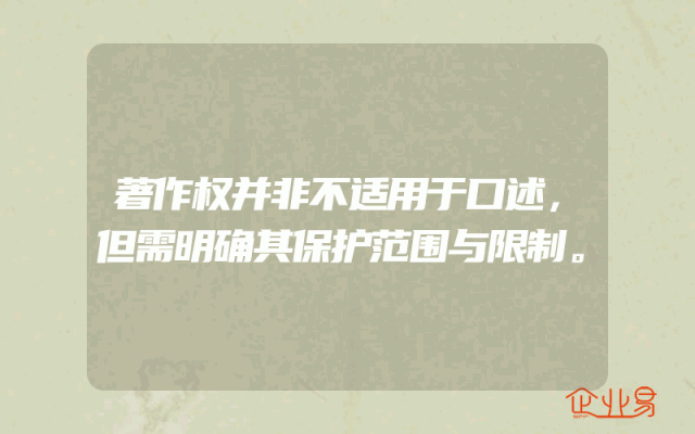 - 著作权并非不适用于口述,但需明确其保护范围与限制。