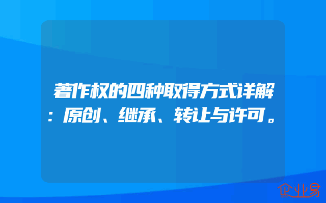 - 著作权的四种取得方式详解:原创、继承、转让与许可。