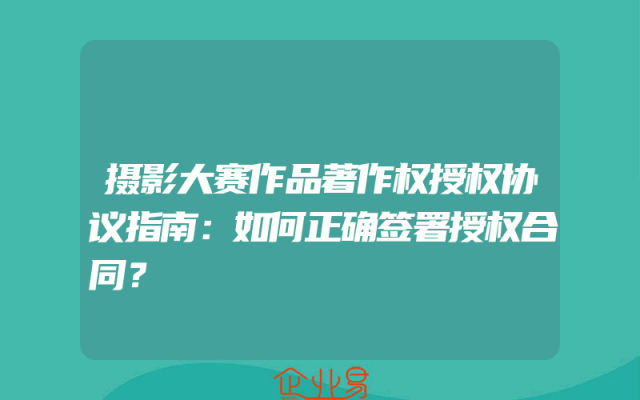 - 摄影大赛作品著作权授权协议指南:如何正确签署授权合同?