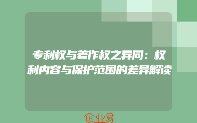 - 专利权与著作权之异同:权利内容与保护范围的差异解读