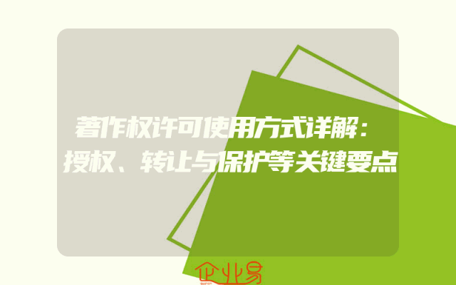 - 著作权许可使用方式详解:授权、转让与保护等关键要点