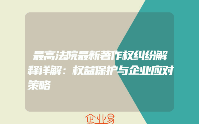 - 最高法院最新著作权纠纷解释详解:权益保护与企业应对策略