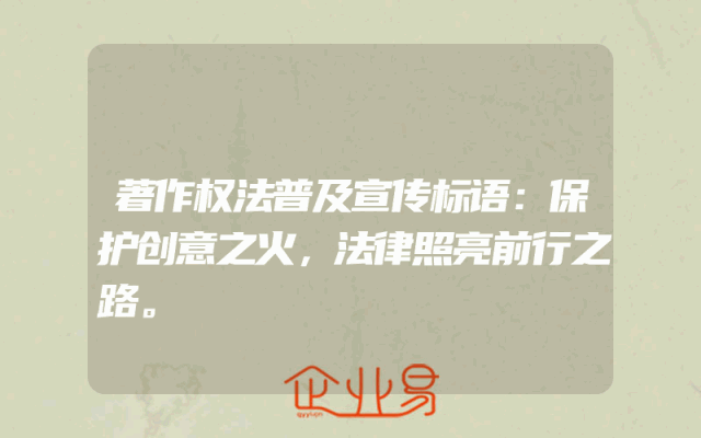 - 著作权法普及宣传标语:保护创意之火,法律照亮前行之路。