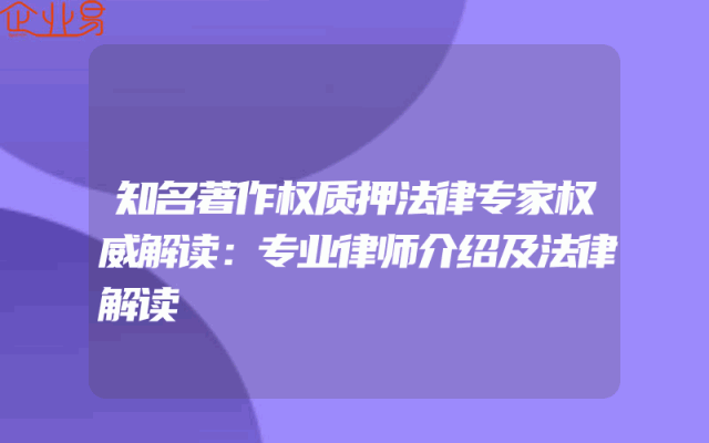 - 知名著作权质押法律专家权威解读:专业律师介绍及法律解读