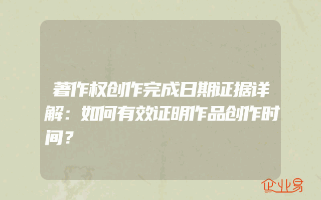 - 著作权创作完成日期证据详解:如何有效证明作品创作时间?