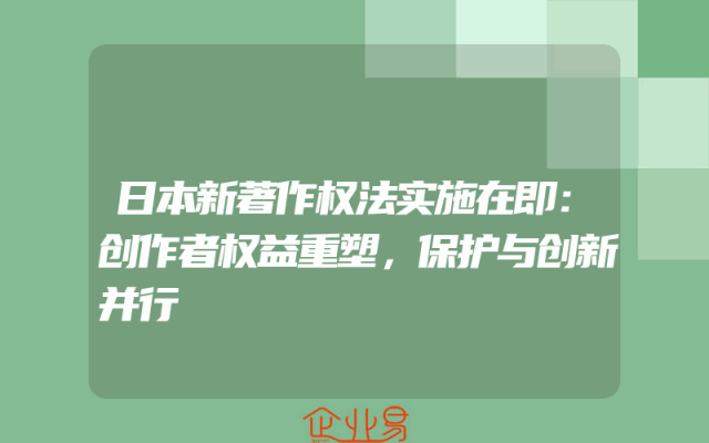 - 日本新著作权法实施在即:创作者权益重塑,保护与创新并行