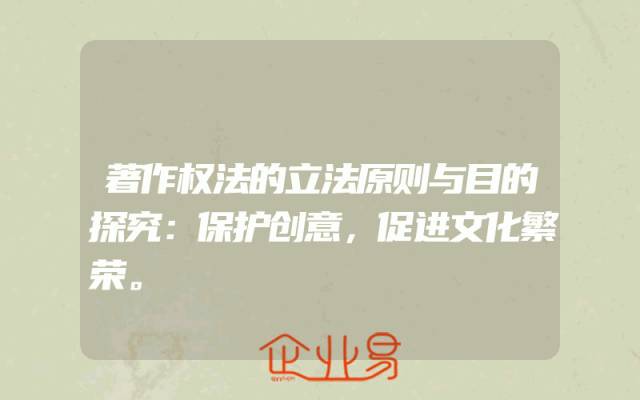 - 著作权法的立法原则与目的探究:保护创意,促进文化繁荣。