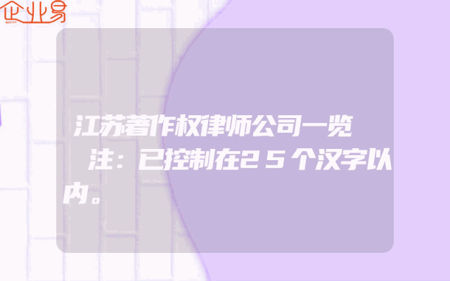 - 江苏著作权律师公司一览 注:已控制在25个汉字以内。