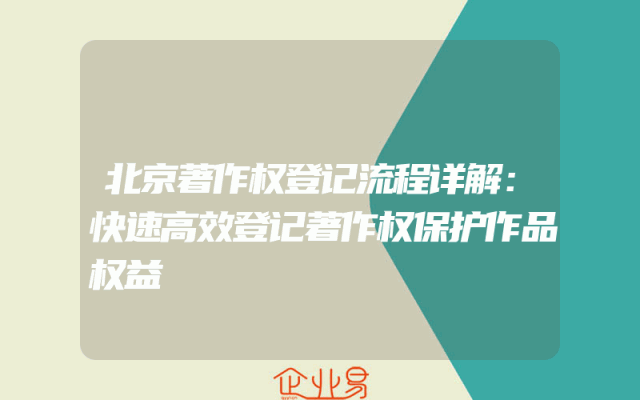 - 北京著作权登记流程详解:快速高效登记著作权保护作品权益