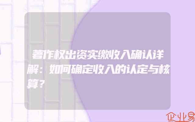 - 著作权出资实缴收入确认详解:如何确定收入的认定与核算?