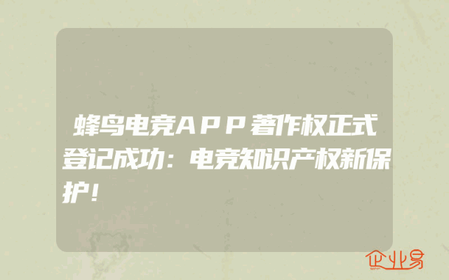 - 蜂鸟电竞APP著作权正式登记成功:电竞知识产权新保护!