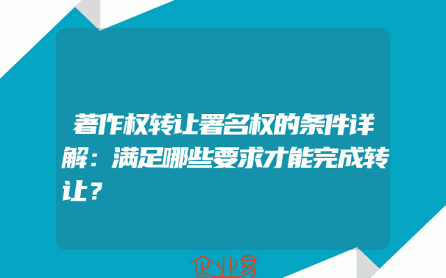 - 著作权转让署名权的条件详解:满足哪些要求才能完成转让?