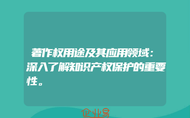 - 著作权用途及其应用领域:深入了解知识产权保护的重要性。