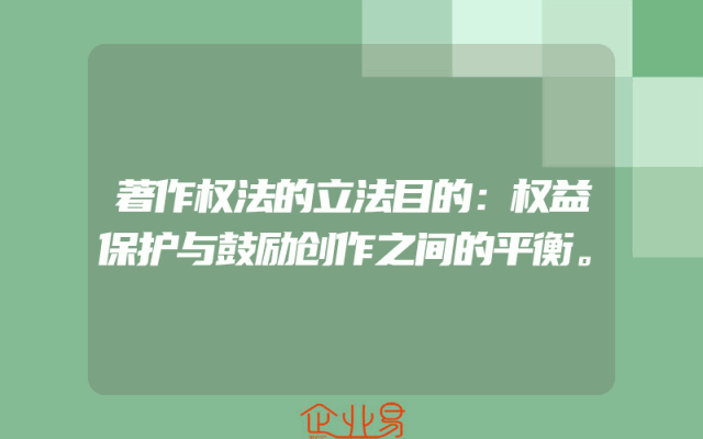 - 著作权法的立法目的:权益保护与鼓励创作之间的平衡。