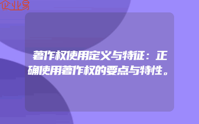- 著作权使用定义与特征:正确使用著作权的要点与特性。