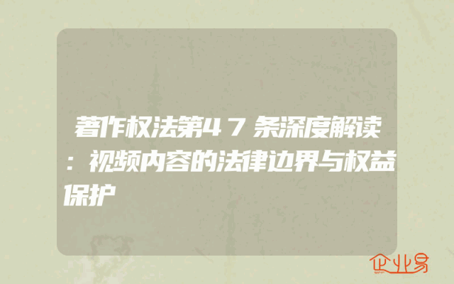 - 著作权法第47条深度解读:视频内容的法律边界与权益保护